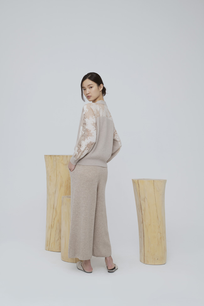 Sandra:我們的羊絨品牌設(shè)計(jì)亮點(diǎn):時(shí)尚、簡(jiǎn)約、舒適自在,往往會(huì)將羊絨和蕾絲及真絲相拼來微妙設(shè)計(jì)。這季的設(shè)計(jì)靈感是:新經(jīng)典。如何回歸少而精,打造更少但更好的衣櫥,適合當(dāng)代女性們多場(chǎng)景穿搭。另外,你以為羊絨只是秋冬的寵兒,那就大錯(cuò)特錯(cuò)了。羊絨的透氣性、吸濕性非常強(qiáng)。不通的織法以及面料搭配,可以創(chuàng)造出羊絨不通的質(zhì)感。BYARN在羊絨的基礎(chǔ)上,加上了天然纖維和真絲,既在舒適程度上保證了品質(zhì),又平衡了實(shí)穿與設(shè)計(jì)感、經(jīng)典與創(chuàng)新度之間的微妙界限。
