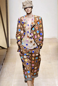 波普?qǐng)F(tuán)是近年年大熱的服裝形式。其以亮麗的色彩,無規(guī)則的圖案之一處于時(shí)裝界的主導(dǎo)地位。和輕薄的雪紡、絲綢類面料結(jié)合,活潑的波普?qǐng)D案也顯現(xiàn)出一股浪漫的感覺來。