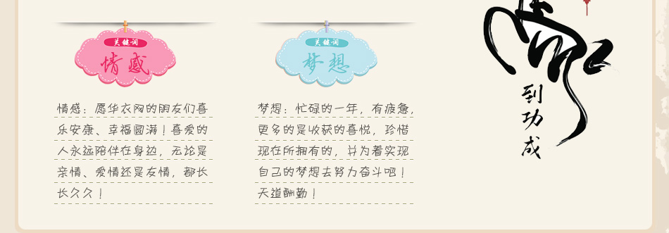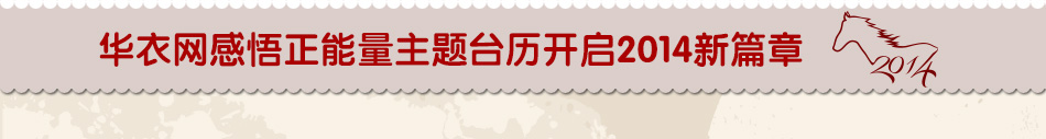 | 華衣網(wǎng)感悟正能量主題臺歷開啟2014新篇章 緊張又刺激的2013年已經(jīng)接近尾聲,服裝行業(yè)這一年里的正能量行為也是不勝枚舉;如何在即將到來的2014年,繼續(xù)保持飽滿的激情和充足的正能量,是行業(yè)內(nèi)每個個體都要考慮的。華衣網(wǎng)作為服裝行業(yè)第一網(wǎng)絡(luò)傳媒,在2014年即將到來之際,特地制作了2014感悟正能量主題臺歷,用以回饋各大服裝品牌長期以來的支持與配合,同時也希望這本充滿正能量的臺歷能為各大品牌的2014添加一份能量,貢獻一份力量! |