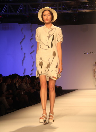既然是藝術(shù)女裝,迪斯廷.凱的設(shè)計(jì)靈感自然和藝術(shù)不分家。就從此次發(fā)布會(huì)的幾大系列來(lái)說(shuō),都會(huì)系列的靈感源于楊正新的《群雀》和《竹》水墨系列作品及當(dāng)代畫(huà)家吳冠中寫(xiě)意山水作品的線條元素,設(shè)計(jì)出山水空靈和現(xiàn)代隨性兼具的系列作品;摩登系列則選用齊白石的《玉蘭》、門采爾的《房屋與樹(shù)叢》等作品,以大氣的演繹手法使原本平面的繪畫(huà)作品呈現(xiàn)出立體的幾何美感,使設(shè)計(jì)更加國(guó)際化;在精品系列中,以精為核,從寫(xiě)意水墨國(guó)畫(huà)《云與雁》中汲取靈感,并將素雅的花色繪制于韓國(guó)進(jìn)口花紗面料上,精致的呈現(xiàn)出高雅質(zhì)美。