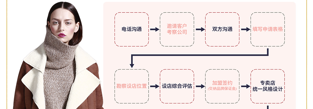 | 作為公司運(yùn)營(yíng)體系“JUMEL&奇也”已建立了資訊、設(shè)計(jì)、物流、服務(wù)一體化的發(fā)展體系及垂直的品牌零售運(yùn)營(yíng)管理體系。對(duì)于認(rèn)同“JUMEL&奇也”的商業(yè)合作伙伴,我們將以高效、專(zhuān)業(yè)的時(shí)裝運(yùn)營(yíng)管理經(jīng)驗(yàn)提供下列支持! 一、產(chǎn)品設(shè)計(jì)優(yōu)勢(shì) 資深產(chǎn)品研發(fā)設(shè)計(jì)團(tuán)隊(duì),將全新的設(shè)計(jì)理念和敏銳的時(shí)尚觸覺(jué),與都市生活人文需求相結(jié)合,以新思維演繹現(xiàn)代女性時(shí)尚自由的新生活概念。 二、服務(wù)優(yōu)勢(shì) 提供統(tǒng)一戰(zhàn)略規(guī)劃和嚴(yán)謹(jǐn)?shù)氖袌?chǎng)運(yùn)作方案,配備有經(jīng)專(zhuān)業(yè)培訓(xùn)的銷(xiāo)售人員協(xié)助加盟商開(kāi)拓市場(chǎng);負(fù)責(zé)對(duì)加盟商的培訓(xùn)(包含業(yè)務(wù)技能訓(xùn)練,店面管理培訓(xùn),導(dǎo)購(gòu)及進(jìn)銷(xiāo)存管理),策劃有效的市場(chǎng)拓展方案;全程密切跟進(jìn)終端店鋪的形象、陳列、銷(xiāo)售、促銷(xiāo)、信息反饋、物流、財(cái)務(wù)、VIP、及售后服務(wù)。 三、管理優(yōu)勢(shì) 01.集中體現(xiàn)在總部的培訓(xùn)方案,設(shè)計(jì),裝修,贏利分析,促銷(xiāo)活動(dòng)的推廣及高效快速的物流保障 02.差異化的貨品計(jì)劃與調(diào)配 03.開(kāi)業(yè)后的經(jīng)營(yíng)指導(dǎo)(薪金系統(tǒng)、專(zhuān)柜/店鋪管理流程、人員結(jié)構(gòu)及素質(zhì)提升、庫(kù)存控制與貨品分析) 04.經(jīng)營(yíng)過(guò)程中的監(jiān)督、指導(dǎo)及商圈分析與區(qū)域發(fā)展建議 05.季末促銷(xiāo)支持及如何合理控制庫(kù)存 四、加盟支持 01.派員實(shí)地考察、專(zhuān)業(yè)的評(píng)估 02.專(zhuān)業(yè)的開(kāi)業(yè)AD支援 03.開(kāi)業(yè)的準(zhǔn)備工作、宣傳品、贈(zèng)品支持 04.開(kāi)業(yè)后的經(jīng)營(yíng)指導(dǎo)(薪金系統(tǒng)、專(zhuān)柜/店鋪管理流程、人員結(jié)構(gòu)及素質(zhì)提升、 庫(kù)存控制與貨品分析) 05.經(jīng)營(yíng)過(guò)程中的監(jiān)督、指導(dǎo)及商圈分析與區(qū)域發(fā)展建議 06.季末促銷(xiāo)支持及合理控制 07.每季提供專(zhuān)業(yè)實(shí)用的陳列手冊(cè)、搭配手冊(cè) 08.靈活的政策,針對(duì)性的促銷(xiāo) 09.差異化的貨品計(jì)劃與調(diào)配 10.督導(dǎo)、主管定期的經(jīng)營(yíng)指導(dǎo)與針對(duì)性培訓(xùn) |