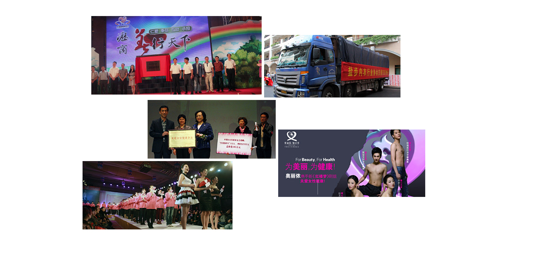 社會責(zé)任   在企業(yè)發(fā)展到一定階段后,奧麗儂并沒有忘記企業(yè)應(yīng)該承擔(dān)的社會責(zé)任,一直以“關(guān)愛女性健康,促進(jìn)行業(yè)和諧發(fā)展”為已任,并積極參與和倡導(dǎo)各項行業(yè)推廣與社會公益活動。2010年,“健康內(nèi)衣專家”奧麗儂攜手新版《紅樓夢》四大主演,攜手婦聯(lián)共同成立了“奧麗儂·郁金香”公益基金,關(guān)愛女性健康,被婦聯(lián)授予“婦女慈善獎”。