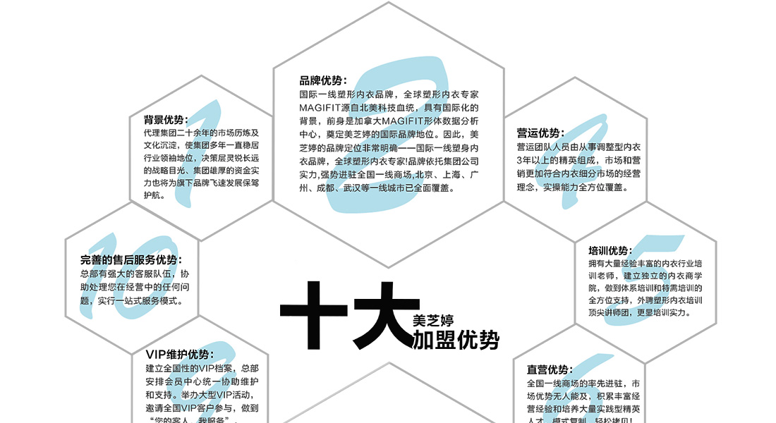 加拿大MAGIFIT內(nèi)衣有限公司的前身是MAGIFIT國際人體數(shù)據(jù)分析研究機構(gòu),由全球知名的醫(yī)學博士、美容美體專家組成,是國際知名塑形美體機構(gòu)、服裝品牌、面料商的戰(zhàn)略合作伙伴。2009年,公司推出同名品牌高端塑形內(nèi)衣—MAGIFIT(美芝婷),依托公司人體數(shù)據(jù)分析、科技面料的研發(fā)背景,研發(fā)的產(chǎn)品裁剪立體、穿身舒適,上市即贏來了“快而舒適”的“塑形內(nèi)衣專家”稱號!
