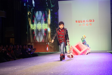 可愛(ài)的小童踩著稚嫩的步伐在臺(tái)上賣萌,時(shí)尚的搭配風(fēng)格,健康優(yōu)先的溫暖設(shè)計(jì),打響了推出的第一炮。