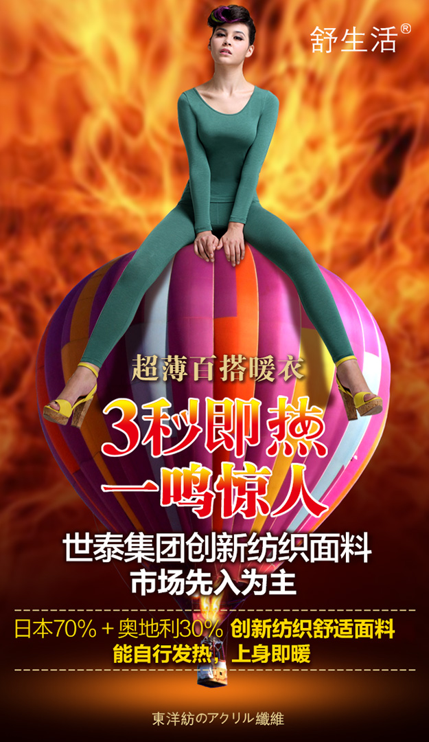 2015年年初,廣東世泰服飾有限公司推出“3秒即熱”超薄發(fā)熱內(nèi)衣!自創(chuàng)立伊始,便奠定了“一個(gè)單品、一個(gè)臻品”的基調(diào),以單品“3秒即熱”超薄發(fā)熱內(nèi)衣進(jìn)軍內(nèi)衣市場(chǎng),用具有“觸膚即暖,3秒即熱的良好性能和四針六線的精湛工藝,并結(jié)合了立體裁剪的版型,給消費(fèi)者從未有過(guò)的穿著體驗(yàn),你或許疑惑:為什么世泰服飾要選擇并堅(jiān)持“一個(gè)單品、一個(gè)臻品”的理念?