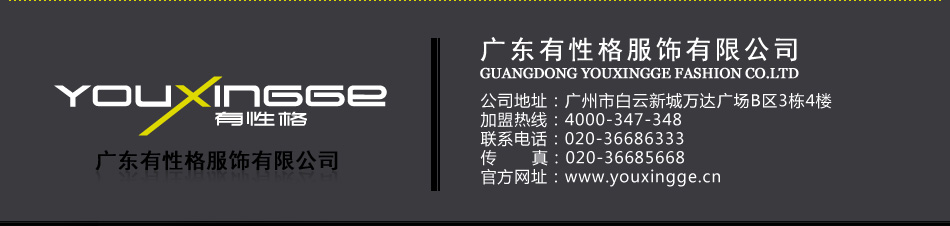 廣東有性格服飾公司是一家專注于時尚休閑服飾研發(fā)、生產(chǎn)、銷售為一體的專業(yè)化企業(yè),旗下自主品牌“有性格”服飾成立于2010年,奉行“我時尚,因為我有性格”的品牌理念,現(xiàn)已布局華南,致力發(fā)展全國。